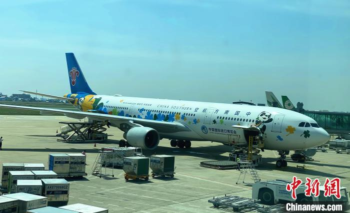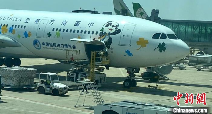 中国南航涂装飞机亮相金边 “进博会云使者”传递祝福