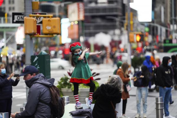10月25日,一名女孩在美国纽约时报广场拍照。新华社