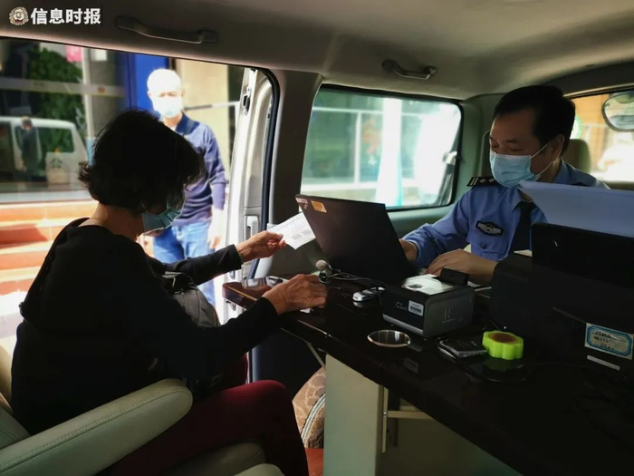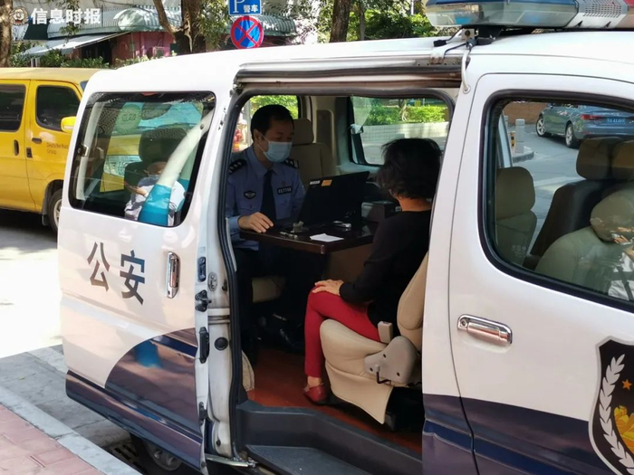 家住广州越秀区的刘婆婆今年78岁,需要更换新的身份证。考虑到刘婆婆年纪大行动不便,她的孩子便打通办证中心的电话预约上门办证。民警上门后,通过采集刘婆婆个人信息、录入指纹等操作,就完成了身份证换领业务受理。这是广州公安户政部门推出的“移动办证窗口”——爱心服务车。