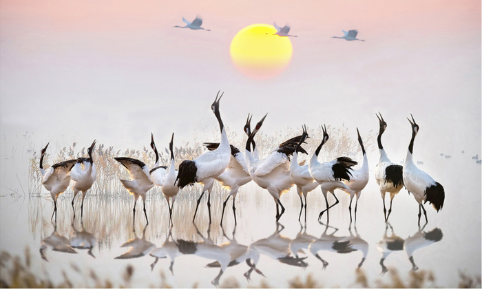 江苏盐城国家级珍禽自然保护区——朝晖颂(孙华金/摄)