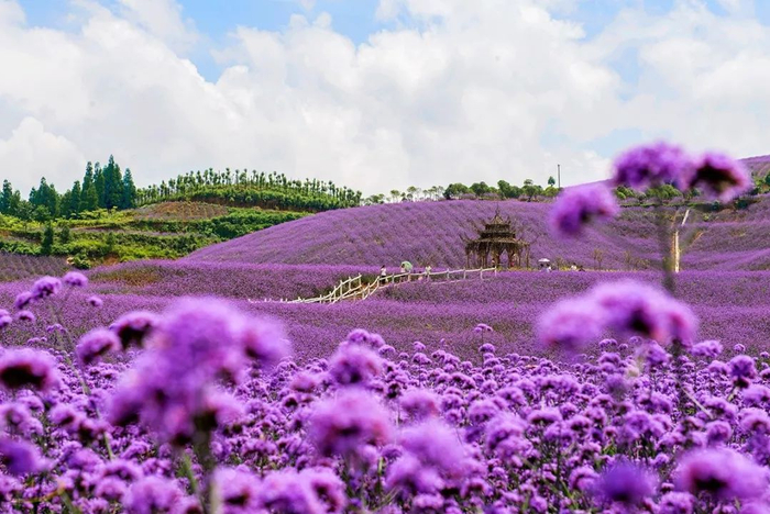 1600亩薰衣草、马鞭草、波斯菊竞相开放