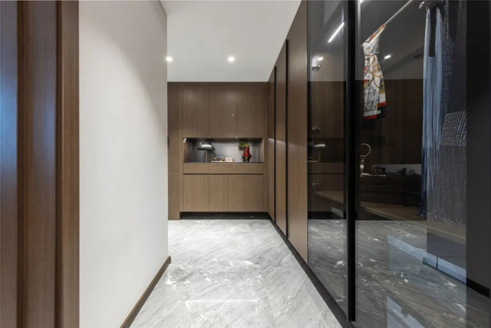 第二个模块是玄关,万科打造了“超洁玄关”,在大多数人的生活中,完成一次归家清洁工作,既繁琐又极易将细菌携带入室。针对这一生活痛点,万科翡翠观澜前瞻打造超洁玄关,在玄关处形成一道与日常生活区的明确分界线,将外界细菌隔绝在外。