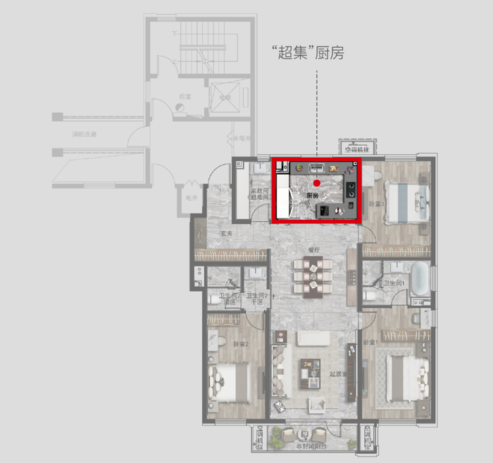 万科翡翠观澜的厨房叫做“超集厨房”,