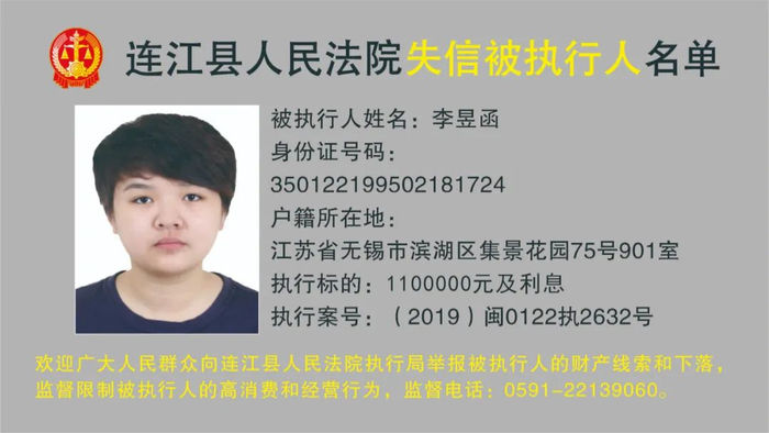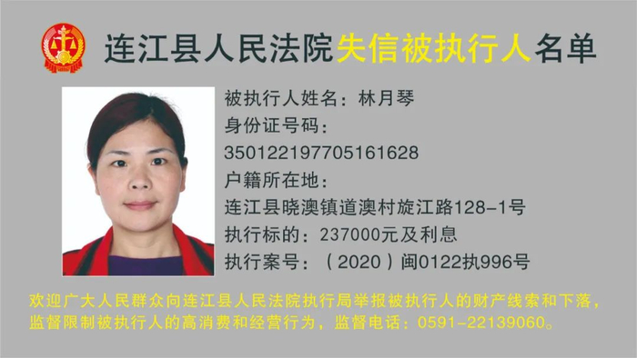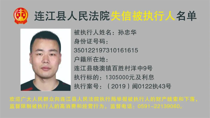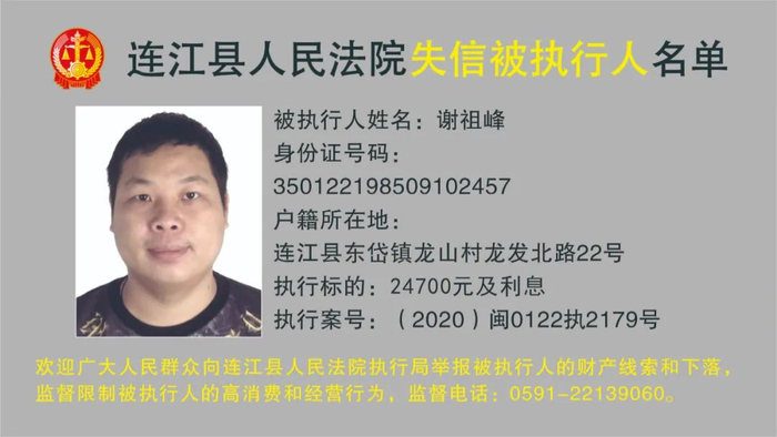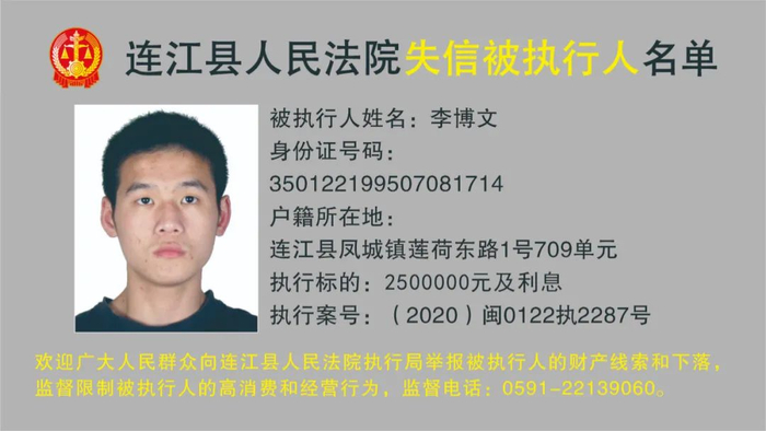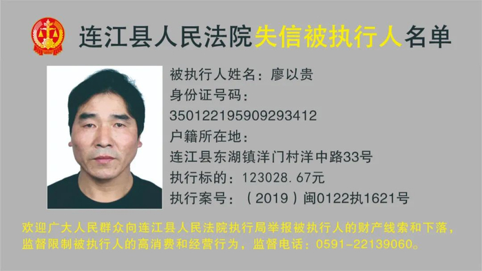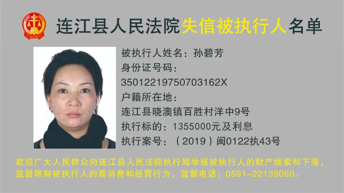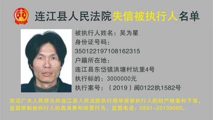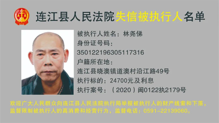 连江县人民法院曝光12名被执行人