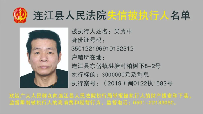 福州发布一批失信被执行人!照片曝光!看看都有谁!