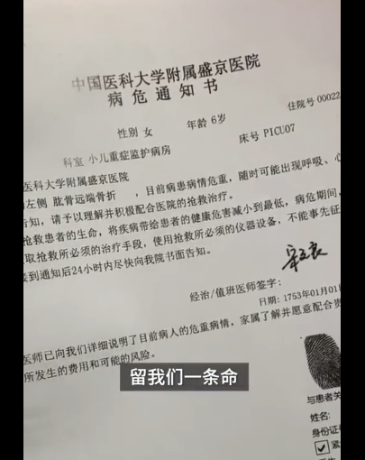 孩子的病危通知书