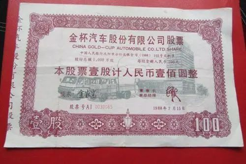 1988年,金杯汽车厂出让股权公开募集资金,经批准公开发售1亿元的股票。但金杯汽车的股票发行并不顺利,申购期已过,却依旧剩余大量股票没有售出。