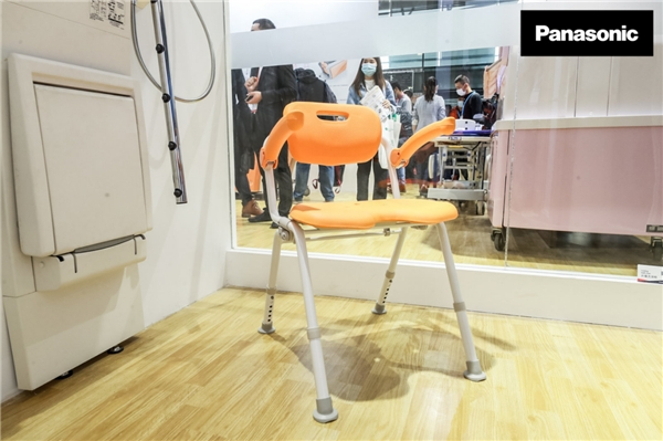 以浴室场景为例,为了方便不同身体状况的人入浴,松下养老开发了一款折叠洗澡椅。柔软的座面与便于抓握的扶手让人坐上去十分放松,椅子高度可调节,便于就坐和起立;可随意调节摆放位置的设计,更是能当作移动台使用。不仅方便老人独立操作,还能辅助看护人员进行更好看护。同时设计上考虑到了场景潮湿的特点,座椅经过防霉加工,更加卫生耐用。