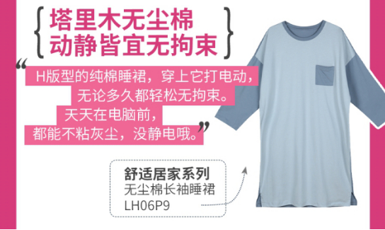 都市丽人舒适居家系列无尘棉长袖睡裙LH06P9