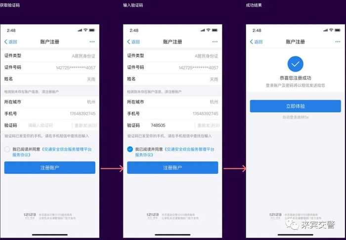 尚未注册“交管12123”的用户进入“交管12123”小程序后,点击小程序首页上方的“请完善个人信息”时,将触发注册操作。