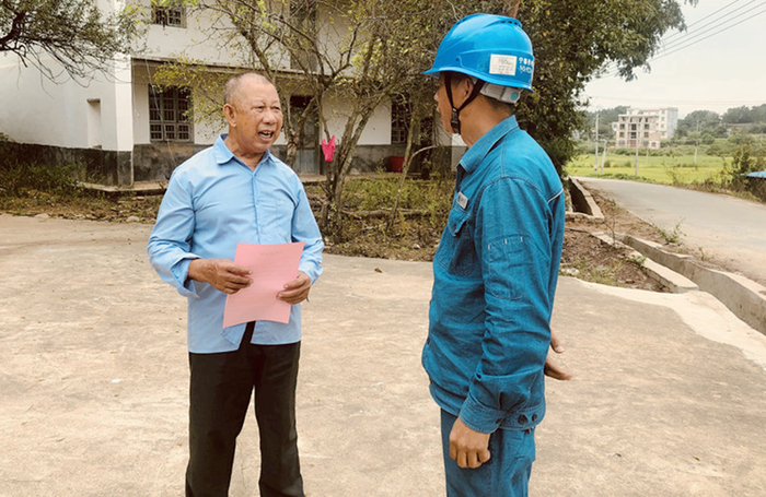 10月27日,江西赣州宁都供电公司员工在田头镇南必村征询客户对供电服务的意见。(郭良生)