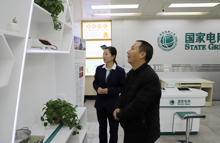 10月28日,湖北黄冈英山供电公司员工章英平在雷店供电所营业厅向客户介绍“网上国网”客户端使用方法。(胡江)