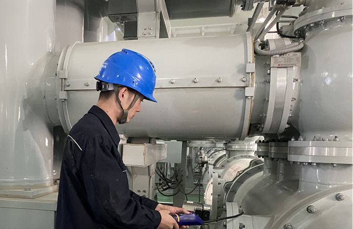 10月26日,西藏电力检修公司员工在220千伏墨竹工卡变电站带电检测2号主变压器间隔。(扎西多吉)