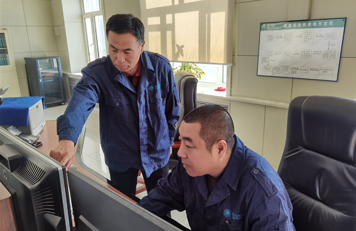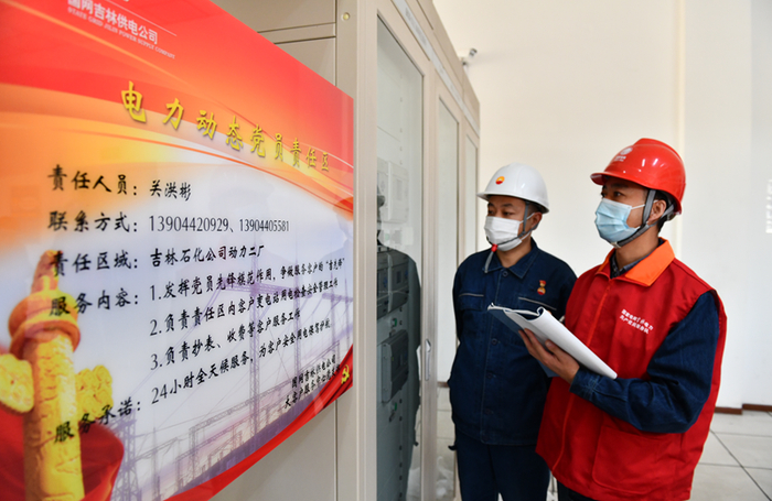 10月27日,吉林省吉林市供电公司大客户服务中心员工李彦军在吉林石化公司动力二厂核查电力设备信息。(孔令骞)