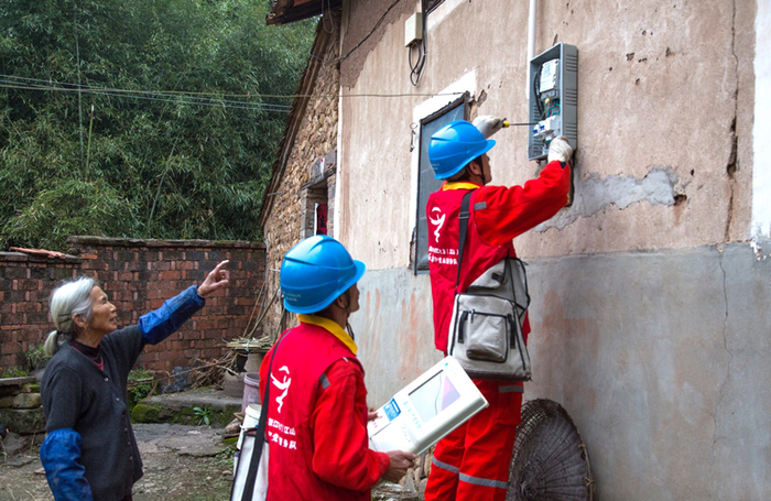 10月27日,浙江衢州江山供电公司员工毛志余等在石门镇江郎村为留守老人更换电表。(王刚 王雄伟)