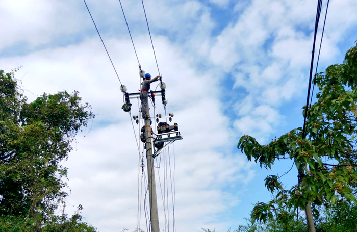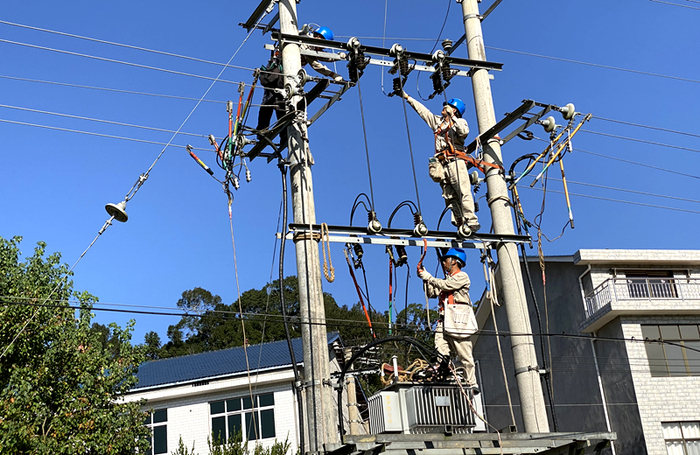 10月27日,福建三明沙县供电公司员工为10千伏梨树线月邦仔支线月邦仔1号公用变压器更换刀闸及避雷器。(谢美芳)