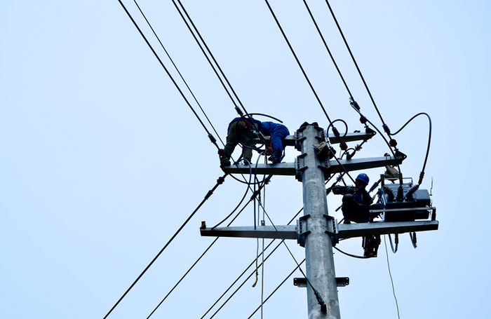 10月28日,江苏徐州丰县供电公司员工李保堂、刘德和在大沙河镇富强冷藏厂为客户检查用电设备。(渠翔运)