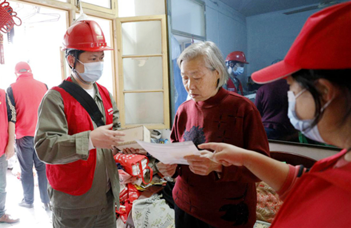 10月26日,湖北宜昌供电公司客服中心党员在樵湖二路社区为贫困老人介绍安全用电知识。(曾铮)