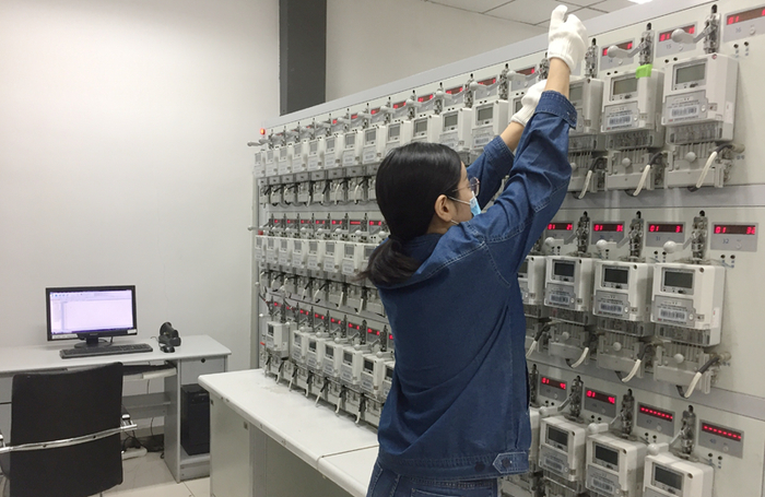 10月27日,河北电力营销中心员工抽检新到货的单相电表。(潘阳)