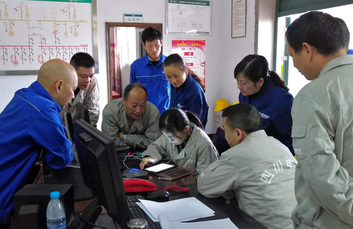 10月26日,四川南充高坪供电公司变电运检班员工在35千伏烟山变电站学习操作票电子化操作流程。(雍伟)