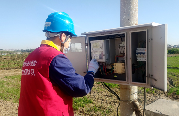 10月28日,河北保定清苑供电公司员工刘鹏在平陵村外10千伏仙人桥线20号台区检查农业排灌设备用电情况。(祖志平)