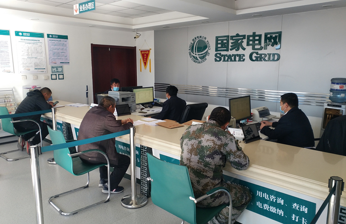 10月28日,冀北承德隆化供电公司员工项春凤、张汉东、刘德录在汤头沟镇供电所为客户办理电采暖业务。(刘凯 赵金)