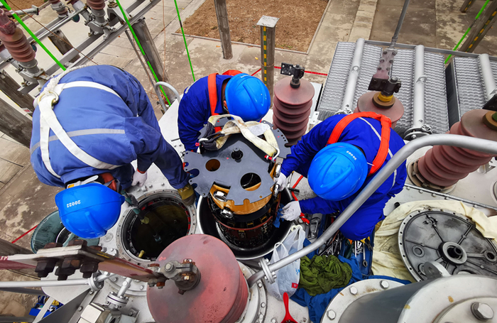 10月27日,安徽电力检修公司共产党员服务队队员陈明阳等在1000千伏特高压芜湖变电站2号主变压器扩建现场开展变压器主体安全管控工作。(徐乐旸 胡可)