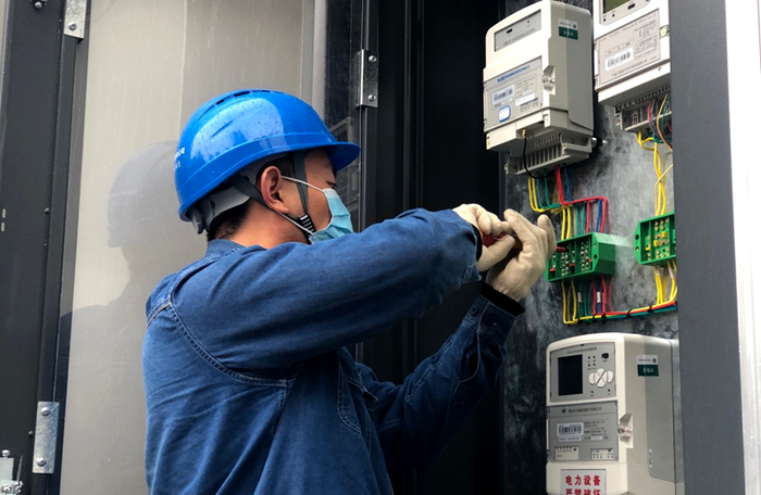 10月27日,陕西西安供电公司计量室员工孙超在西安市群众面粉厂为客户检查电表接线。(惠婧)
