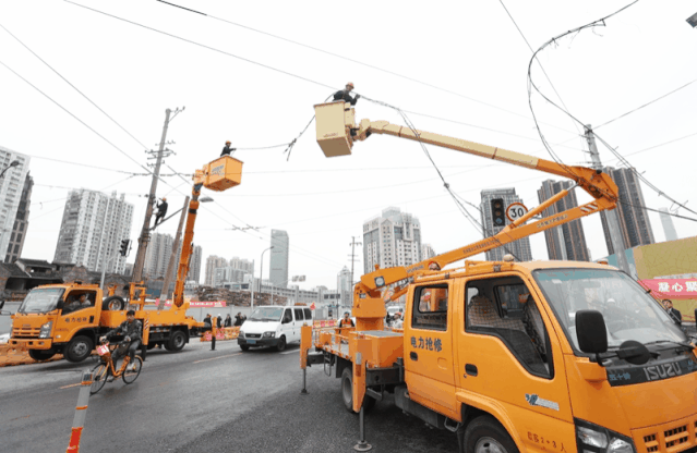 10月27日,上海市北供电公司员工在曲阜路开展架空线入地工程施工。(施燕斌)