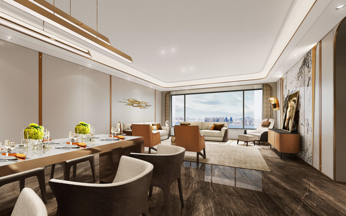建筑面积约90-200㎡盛境华宅,南卧北厅格局,空间动静分明,客餐一体化的功能设置兼具港式细腻质感与北方硬朗气质。通过对当代人居习惯与生活方式的反复精研,户型上采用了客餐厅一体化设计,在空间上彰显大宅的通透格属性,更对位峰层人群对居家会客空间的需求。