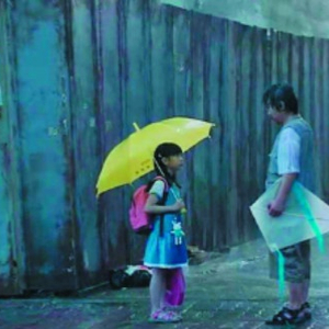图说:电影《素媛》里的受害小女孩和罪犯在雨中相遇。 GJ图