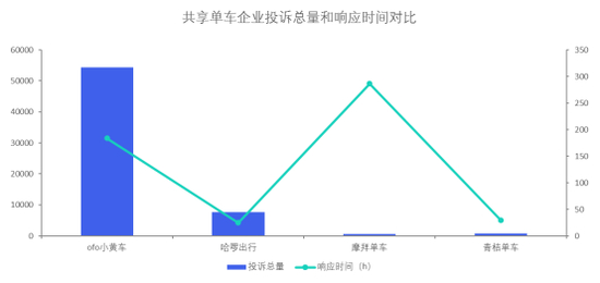 ofo小黄车、哈啰出行、摩拜单车、青桔单车投诉数据对比