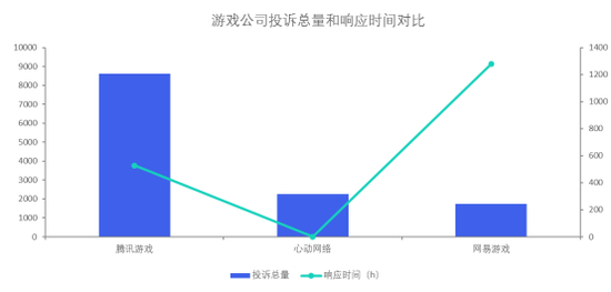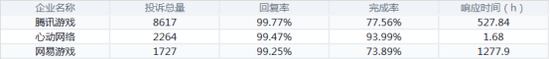 腾讯游戏、心动网络、网易游戏投诉数据对比