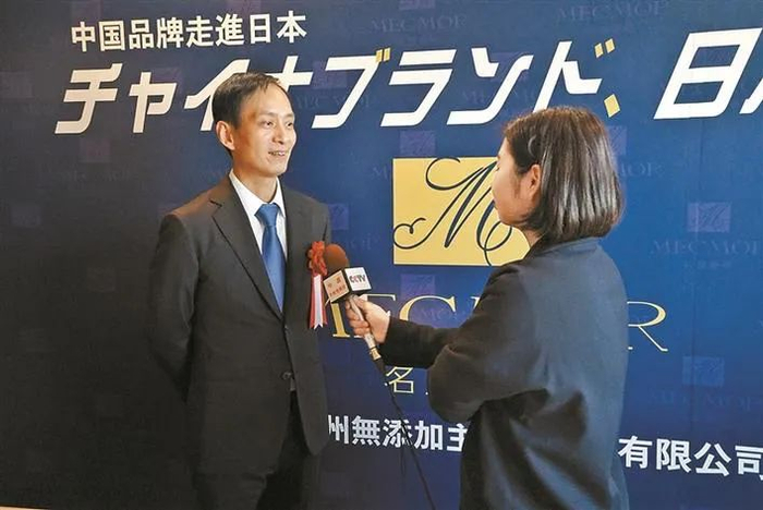“中国品牌走进日本”大型活动上,广州无添加主义化妆品有限公司董事长喻君接受央视采访。