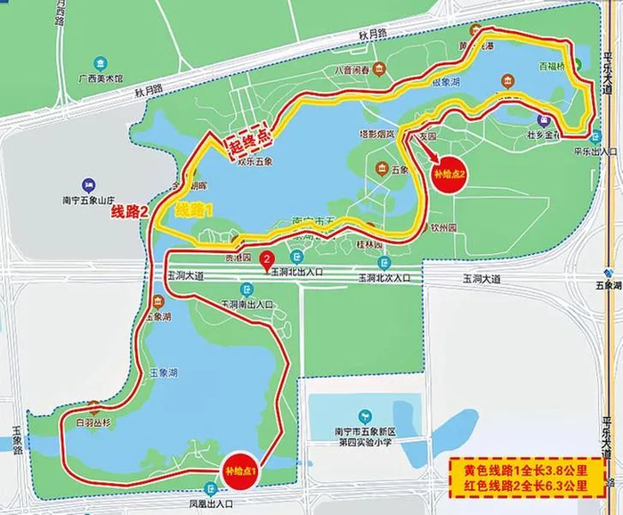 本次跑步活动将在11月1日上午8时开始集合,开跑地点位于五象新区秋月路五象湖北广场,五头大象雕塑旁。跑步路线分五象湖小圈3.8公里,大圈全程6.3公里环湖跑,跑友可根据自身体力自行选择跑步路线。