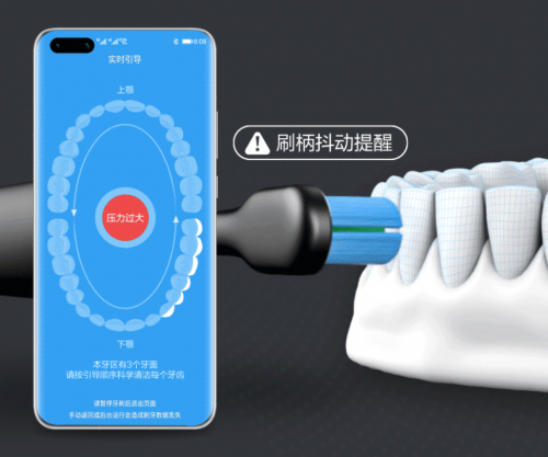 另外,星钻还配置了压力感应和防飞溅功能,在App上开启这两个功能之后,在启动牙刷时,没有压力感应,牙刷的振动频率较轻,检测到正常的刷牙力度时,振动频率恢复正常,压力过大时机身会发出抖动提醒,避免伤害口腔。