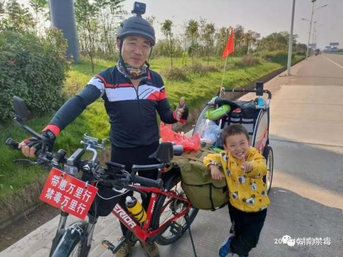 45岁爸爸带3岁儿子骑行:株洲出发目的地海南 沿途宣传禁毒知识