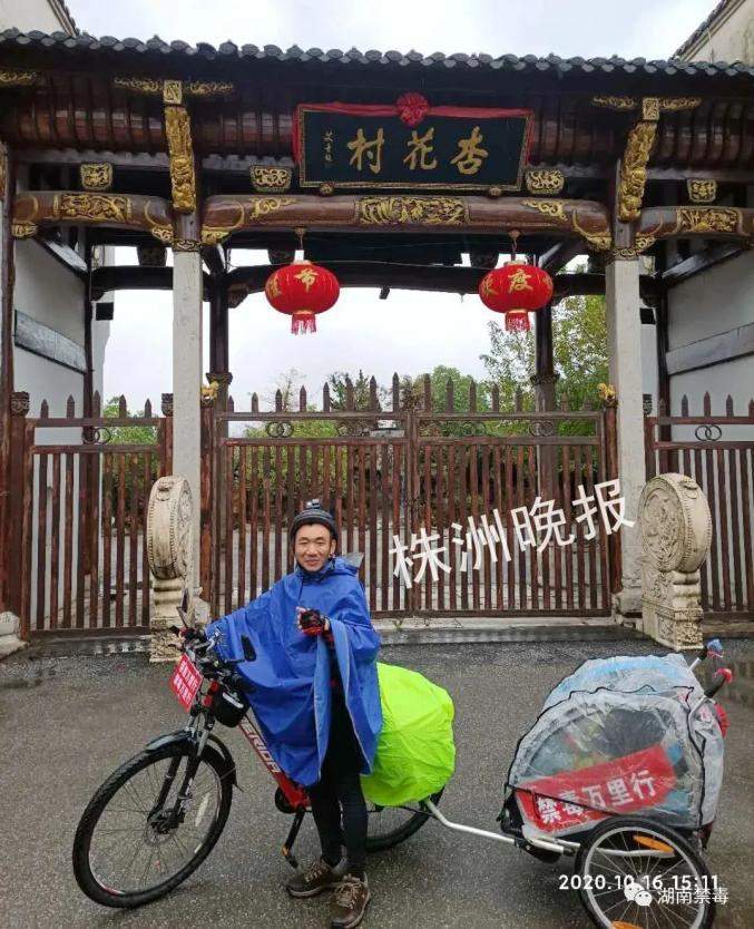 做好了万全准备,10月2日,罗新华骑着自行车,后方挂上小拖车,带着儿子从株洲出发,正式踏上了骑行旅程。