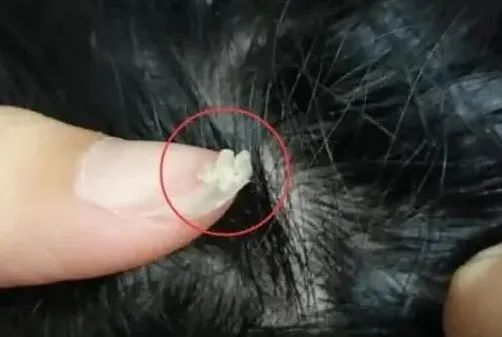 挠抓头皮的指甲也粘有“白泥”,细闻还有异味!
