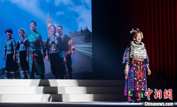 在30日晚举办的“黎风苗韵·绣梦中国”2021 EVE CINA主题时装秀上,少数民族绣娘现场讲述这些年她们靠手艺改变命运并带领一群绣娘摆脱贫困、走向富裕的故事。 依文集团供图