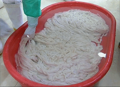 很多香肠用淀粉肠衣或者是羊肠衣来包裹香肠,很影响香肠的味道。所以林师傅还是使用天然的猪肠衣,浸泡4小时再加盐浸渍,薄且有韧性,天然还不影响口感。