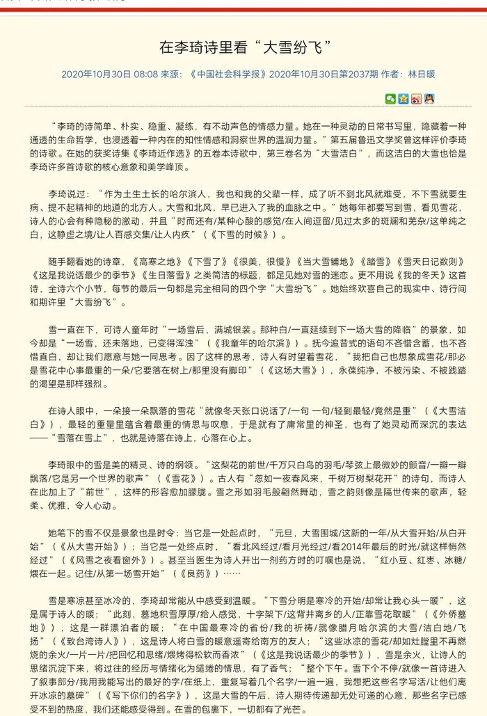 原标题:林日暖:在李琦诗里看“大雪纷飞”