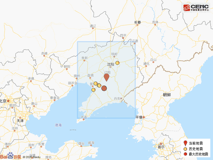 历史地震:根据中国地震台网速报目录,震中周边200公里内近5年来发生3级以上地震共6次,最大地震是2017年12月19日在辽宁鞍山市海城市发生的4.4级地震(距离本次震中56公里),历史地震分布如图。