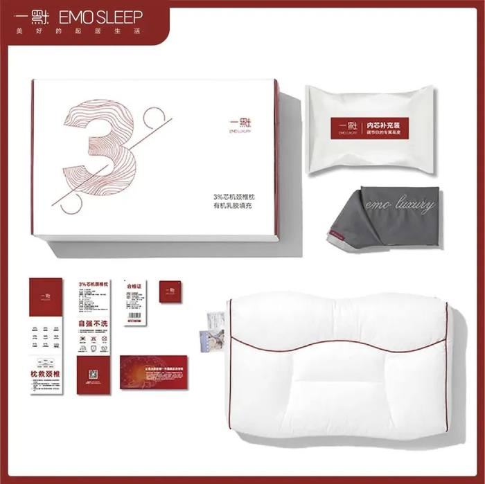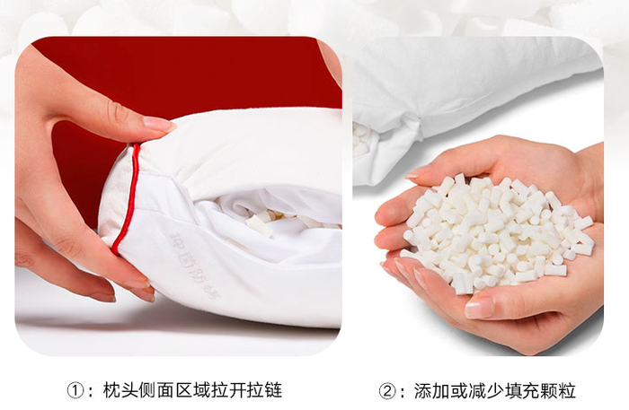 不仅如此,一默还准备了加量随心包,增减颈部分区乳胶颗粒即可调节枕头至合适高度。