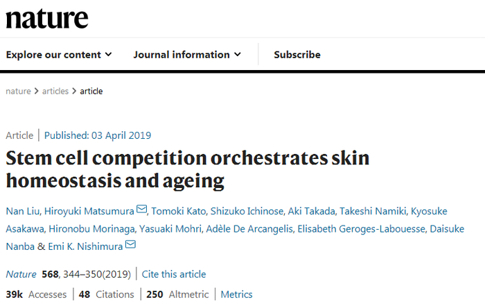 ③Liu N, Matsumura H, Kato T, et al. Stem cell competition orchestrates skin homeostasis and ageing[J]. Nature, 2019, 568(7752): 344-350.