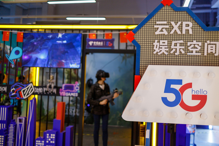 上海电信在地标式商业综合体内设立5G云XR娱乐空间,让更多消费者近距离感受5G带来的科技新体验。