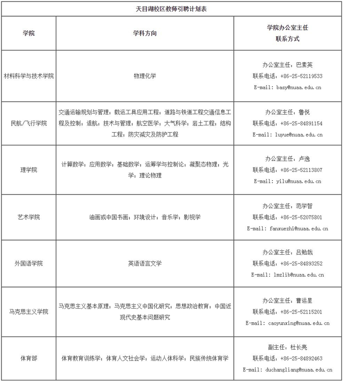 2. 应聘常规师资请填写《南京航空航天大学教学科研岗位申请表》,发送至招聘学院办公室主任邮箱。