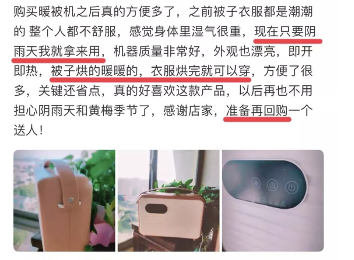 也是好评连连~基本都觉得这款暖被机好用又实用。