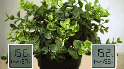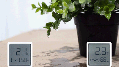 经过1个小时的漫长等待,冷库的角落温度已经分别上升至2.1℃和2.3℃,这时绿植的冰冻的叶片逐渐开始融化,滴水。
