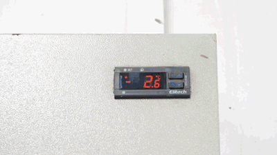 为了检测科西取暖器的3小时的“暖屋”效果,我们又叒叕到了冷库,把温度调到了-2℃!(冷库面积为15㎡)并且在屋子角落左右各设置了一枚温度计。